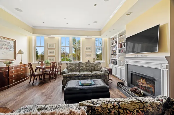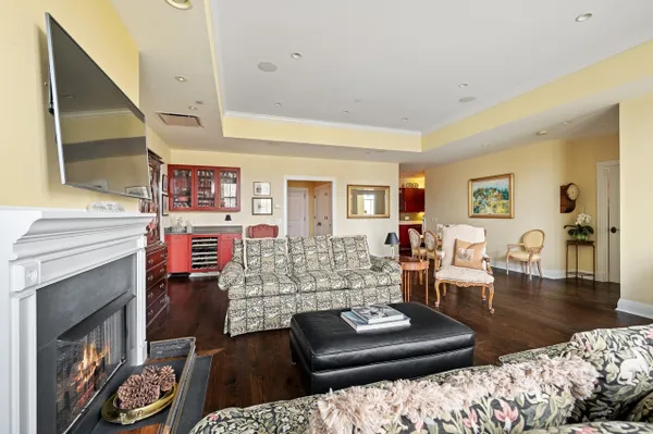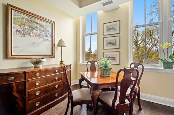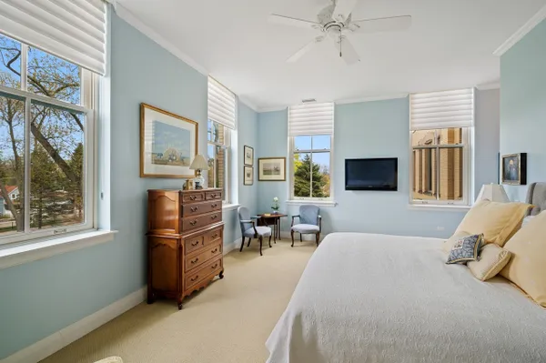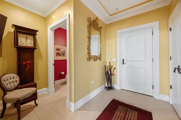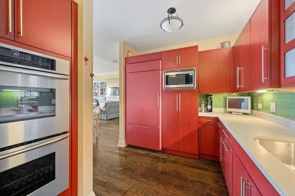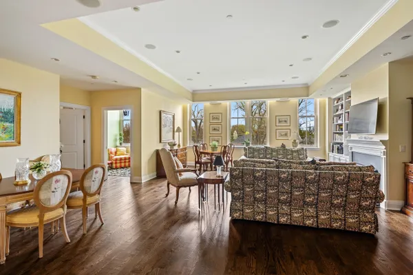 Best of the Best! Stunning 2216 square foot Mallinckrodt condo offers the ideal floorplan...a gorgeous Great Room concept enhanced by rich hardwood floors, 12 foot ceilings, 9 foot windows, elegant moldings, custom built-ins, recessed lighting and a striking decor. The elegant foyer is nicely-sized with 2 large closets and a well placed powder room. Entering the Great Room you immediately have a sense of airy, light-filled spaciousness. This grand-sized room lives and entertains easily with a large conversational grouping around the beautiful fireplace and custom bookshelves, a handsome bar area with glass-front cabinetry and wine frig, a large dining area and a game table area. The kitchen is adjacent to the Great Room, it has a chic Euro-design with Brookhaven Cinnabar cabinetry, Mona Lisa glass tile backsplash, quartz countertops, and high-end Thermador stainless appliances. The guest suite is perfectly situated on the west side of the condo, it is well-sized and comfortable with a full bath and two exposures. A special feature is the charming den that provides a quiet get-away space . The master suite is gorgeous, privately located on the far east side of the home it enjoys a double exposure from 4 over-sized windows, a huge fully-appointed walk-in closet and a lovely bath with double vanities, shower and linen closet. There is also a well-sized laundry room with Maytag appliances, ample cabinetry and sink. There are two parking spaces in the underground heated garage and 2 storage lockers. The building is sited on 14 acres of beautifully landscaped park land and conveniently located to the Lake & Ridge shopping area.
